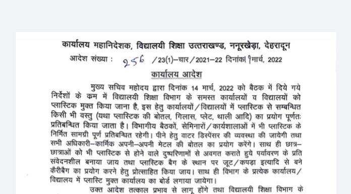 उत्तराखंड शिक्षा विभाग में डीजी शिक्षा का बड़ा फरमान हुआ जारी ,
